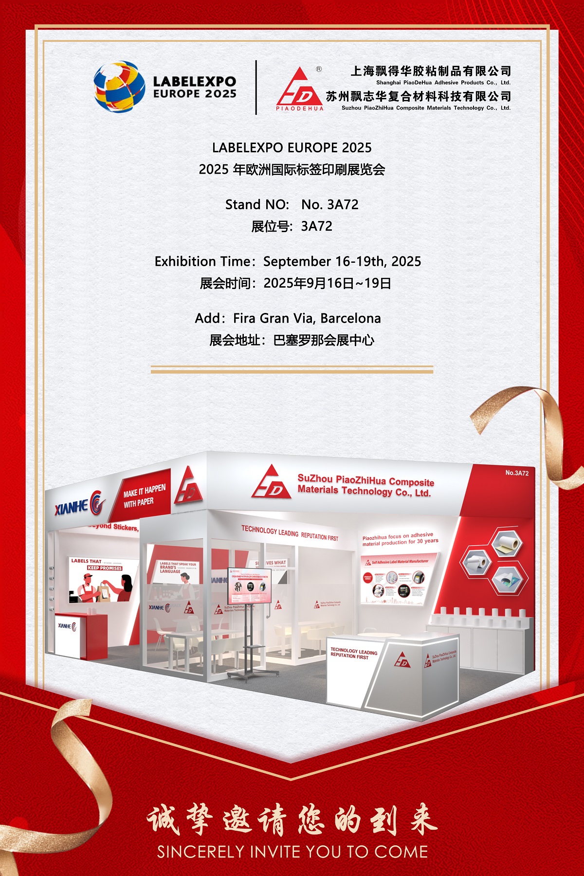 SuZhou PiaoZhiHua Composite Materials Technology Co., Ltd. è orgogliosa di annunciare la sua partecipazione a Labelexpo Europe 2025, la principale fiera internazionale per la stampa di etichette e imballaggi, che si terrà dal 16 al 19 settembre 2025 presso Fira Gran Via a Barcellona, Spagna. In qualità di produttore affidabile di materiali per etichette autoadesive ad alte prestazioni con oltre tre decenni di esperienza nel settore, Piaozhihua presenterà il suo portafoglio di prodotti innovativi allo stand N. 3A72 . La mostra presenterà soluzioni adesive avanzate su misura per diverse applicazioni nei settori dei beni di consumo, della logistica e dell’industria.