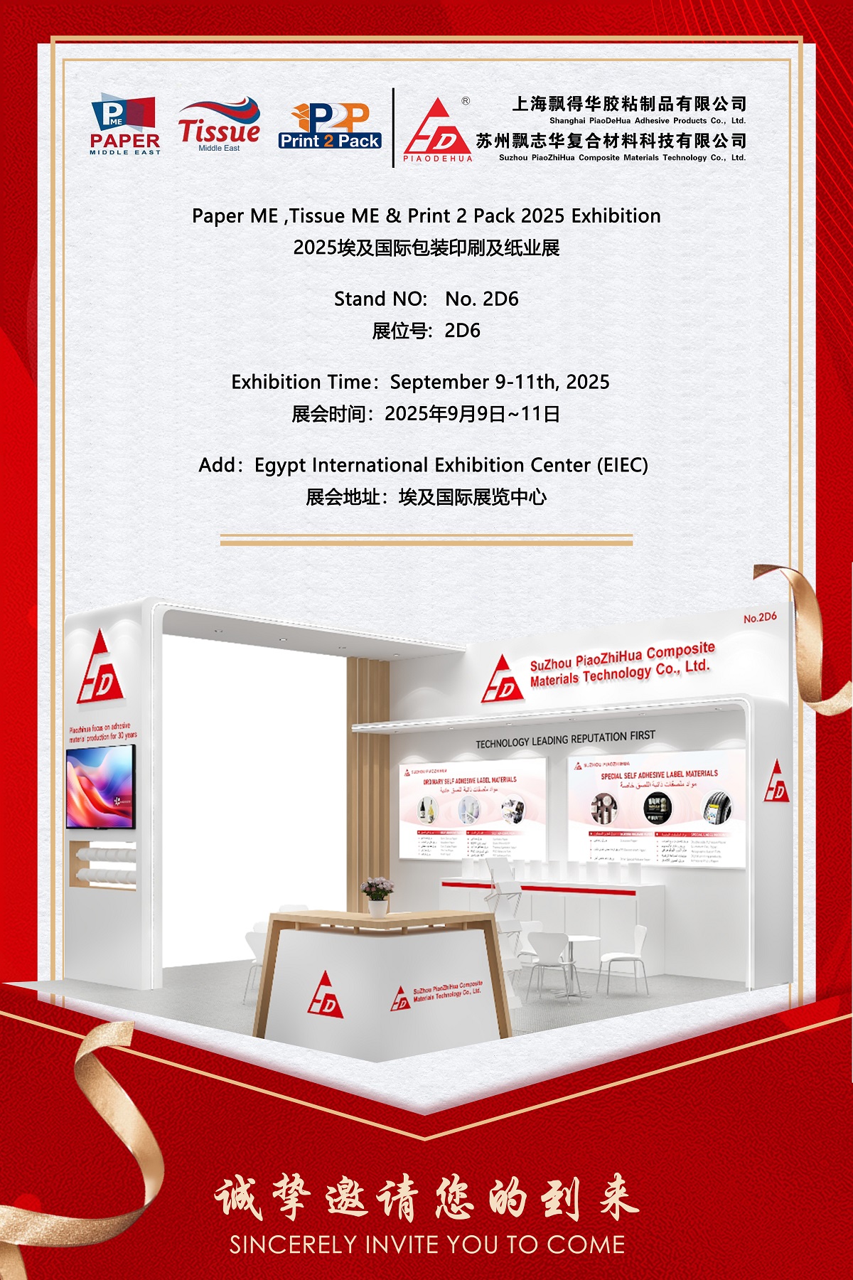SuZhou PiaoZhiHua è entusiasta di partecipare alla fiera Paper ME, Tissue ME & Print 2 Pack 2025, un'importante piattaforma regionale per l'industria dell'imballaggio, della stampa e della carta, che si terrà dal 9 all'11 settembre 2025 presso l'Egypt International Exhibition Center (EIEC) al Cairo. In qualità di fornitore leader di materiali per etichette autoadesive, Piaozhihua presenterà la sua gamma completa di prodotti adesivi ordinari e speciali presso lo stand n. 2D6, evidenziando soluzioni progettate sia per applicazioni standard che impegnative.